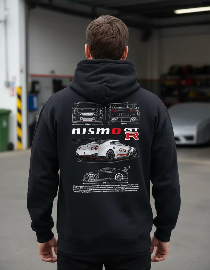 Perfecta para el uso diario, para eventos automovilísticos, salidas casuales o simplemente para mostrar tu admiración por el Nissan Nismo GTR. Esta sudadera es una adición imprescindible para los amantes de los autos deportivos y del estilo refinado.
